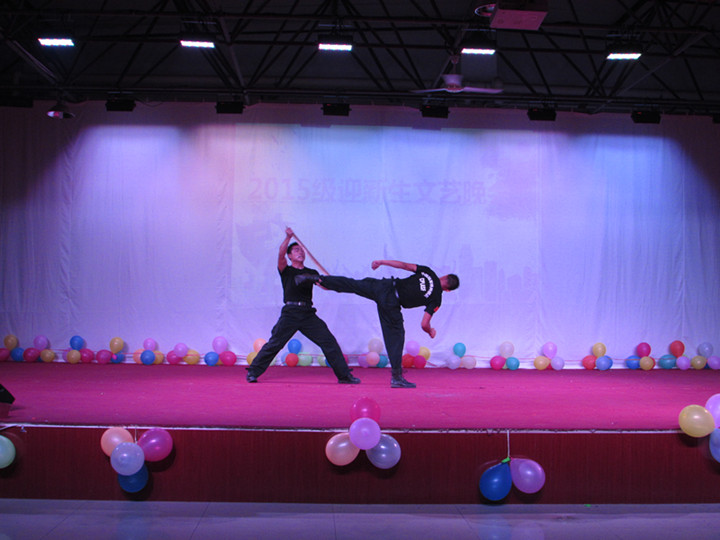 迎新晚会精彩纷呈、激情荡漾,为大家带来一个师生同乐的不凡之夜。来自军训三班的黄大伟以一首《像梦一样自由》迅速把大家带入晚会的气氛中来;歌曲《老男孩》更是让我们回想起曾经那些快乐时光。教官们也为大家带来了精彩的演出,他们矫健的身姿,扎实的专业素养,昂扬的精神风貌,为我们展现了力量之美......还有街舞、架子鼓、小品等多种表演形式,为大家带来了美的享受,同学们的掌声和欢呼声更是接连不断。