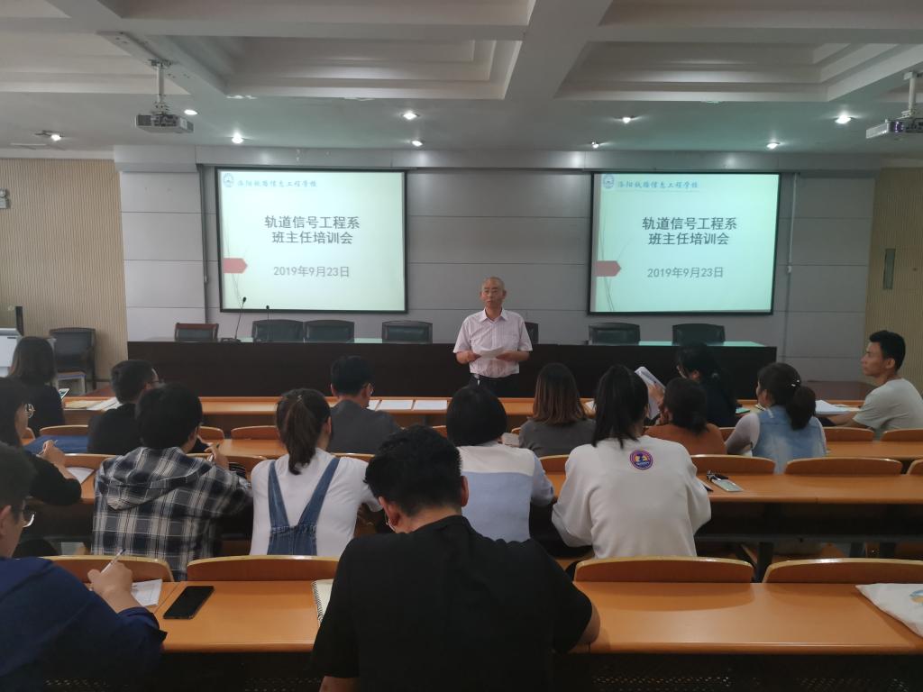 9月23日下午,轨道信号工程系在1号实训楼2楼多功能报告厅召开本学期首次班主任工作培训会。系主任王民哲、副主任马瑞及系18级、19级全体班主任老师参加了此次会议。会议由马瑞主持。