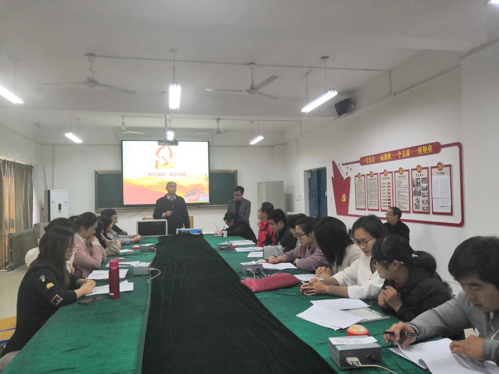 11月21日下午,轨道信号工程系党支部在1号教学楼238党员活动室开展“学习强国”知识竞赛。竞赛由党支部副书记张建平主持,全体党员参加。