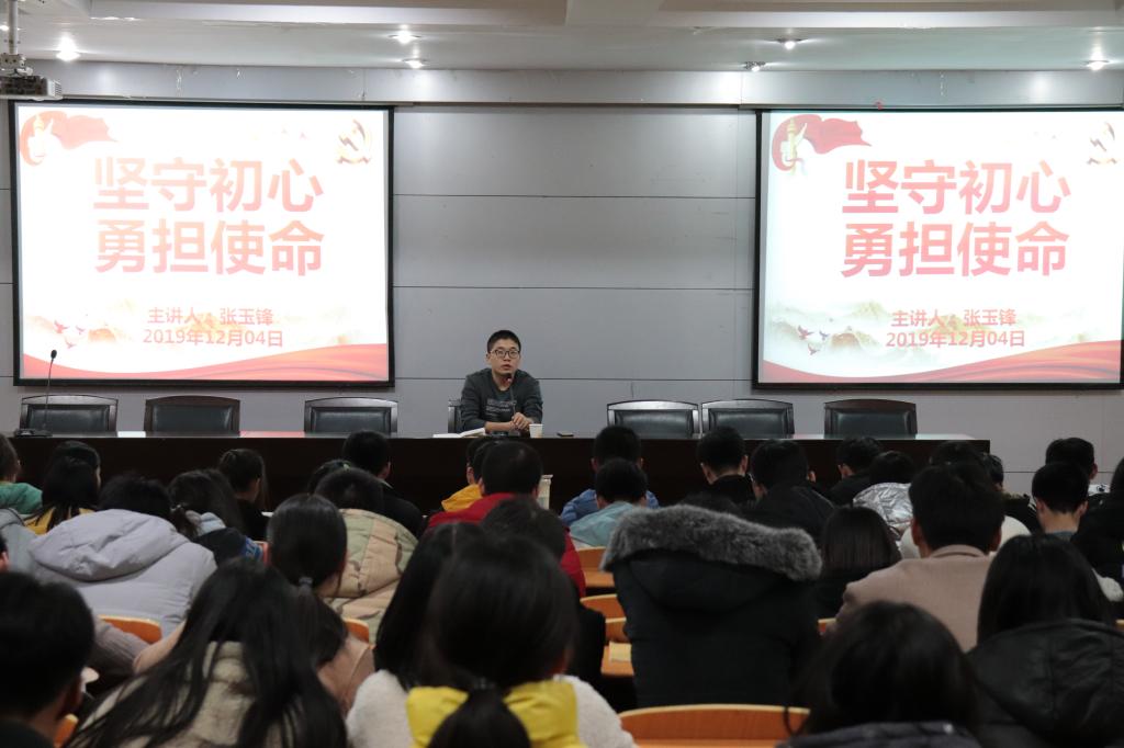12月4日,张玉锋以共产党人的初心和使命为主线,以大见小,向大家分析了学生的初心和使命。