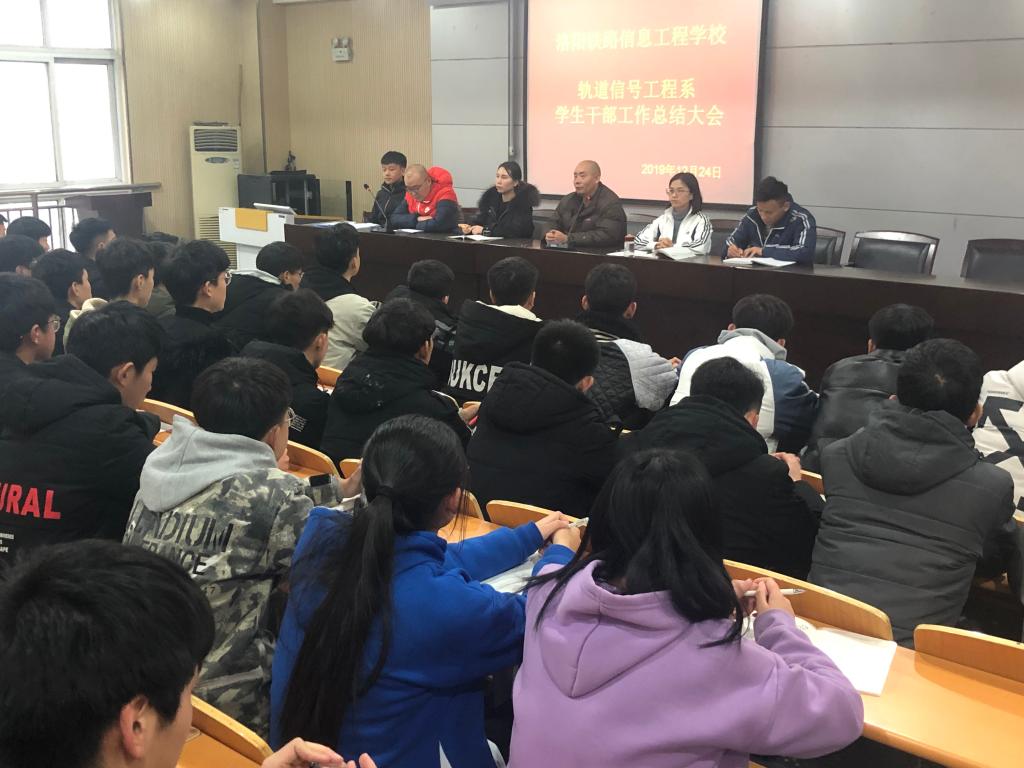 12月24日,轨道信号工程系学生干部工作总结大会在一号实训楼二楼多功能报告厅召开。轨道信号工程系主任王民哲、副主任马瑞及全体学生干部参加会议。