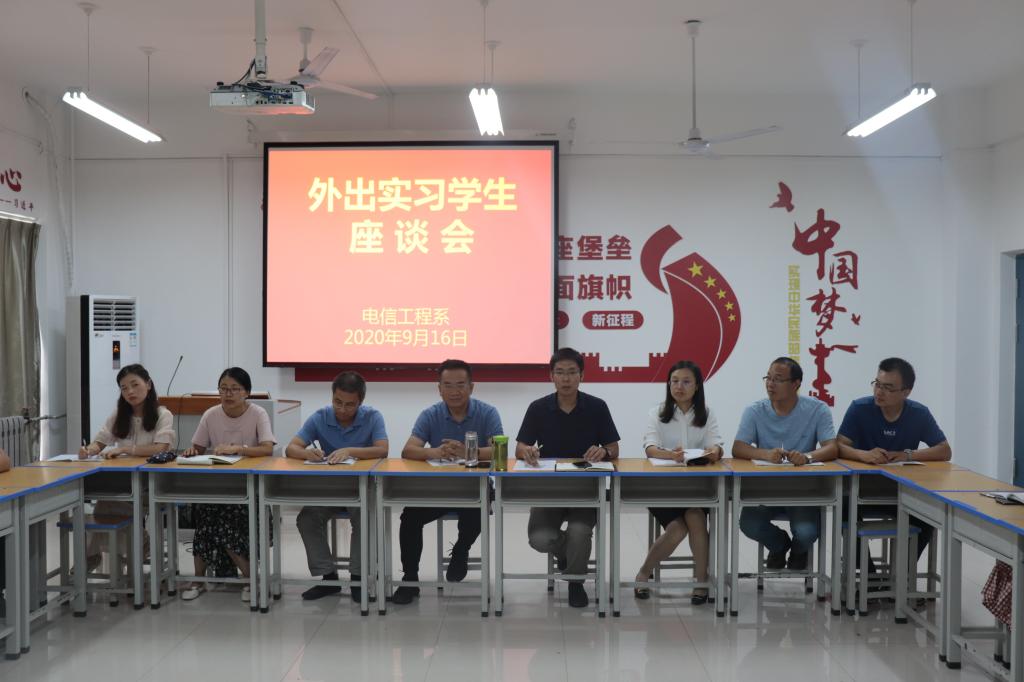 9月17日下午,电信工程系在2号教学楼会议室组织召开了外出实习学生座谈会。副校长于庆斌,电信工程系党支部书记、系主任张波,副主任李军华、李琼及通信技术教研室部分教师和18名外出实习学生共同参加会议。会议由张波主持。
