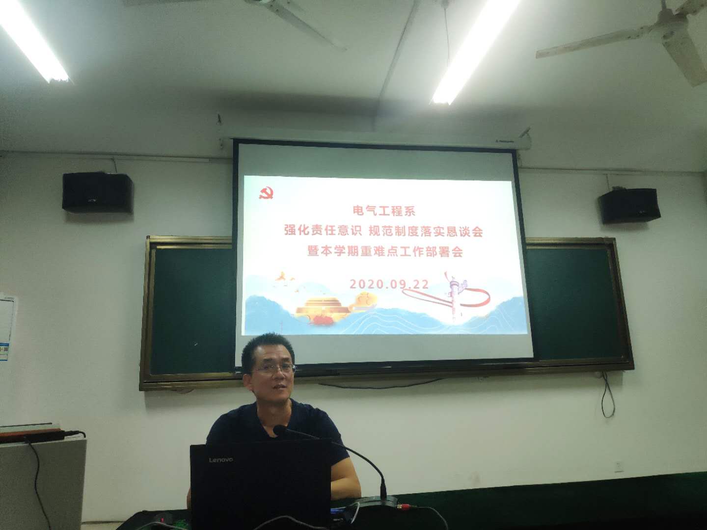 9月22日下午,电气工程系召开“强化职责意识 规范制度落实”恳谈会暨学期工作部署会,全体教职工参加会议。会议由系党支部书记、系主任段云冬主持。