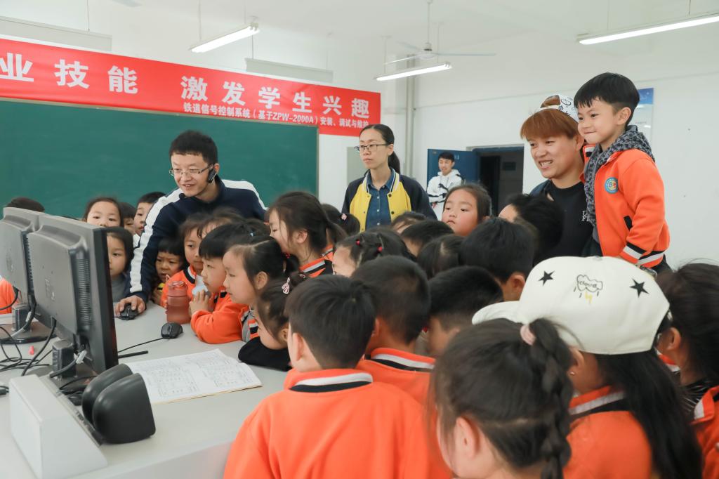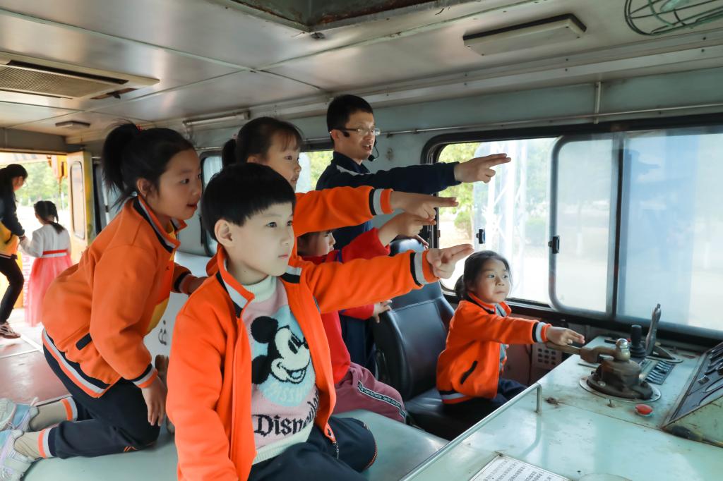 轨道信号工程系主任王民哲亲切的接待了大家,介绍了我校的发展历程,并鼓励孩子们好好读书,好好学习,早日成为国家栋梁之才。在我校宋玉鼎老师的带领下,大家参观了蒸汽机车、车站控制中心、铁路车站、内燃机车驾驶室等地。在研学过程中,系教学副主任张建平就孩子们关心的“火车有没有方向盘”“火车是怎么拐弯的”等问题一一做了解答。当提到詹天佑、瓦特、爱迪生等著名人物时,孩子们纷纷表示:我们长大也要做科学家!