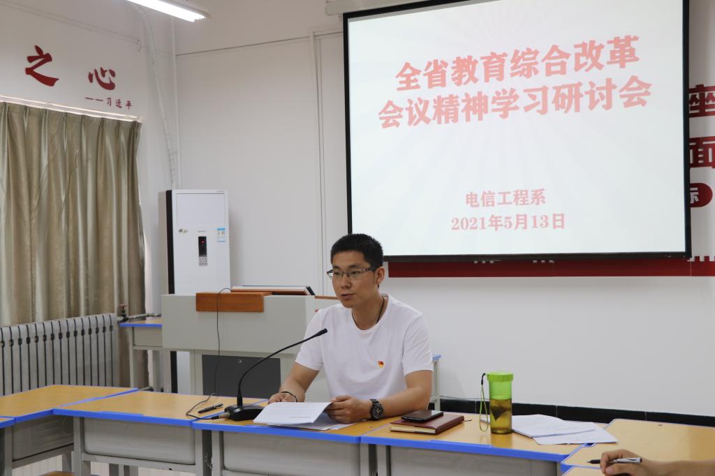 5月13日下午,电信工程系党支部在2号教学楼党员活动室召开了全体党员大会,校党委委员、副校长于庆斌,电信工程系党支部书记张波及全体党员参加了本次大会,会议由张波主持。