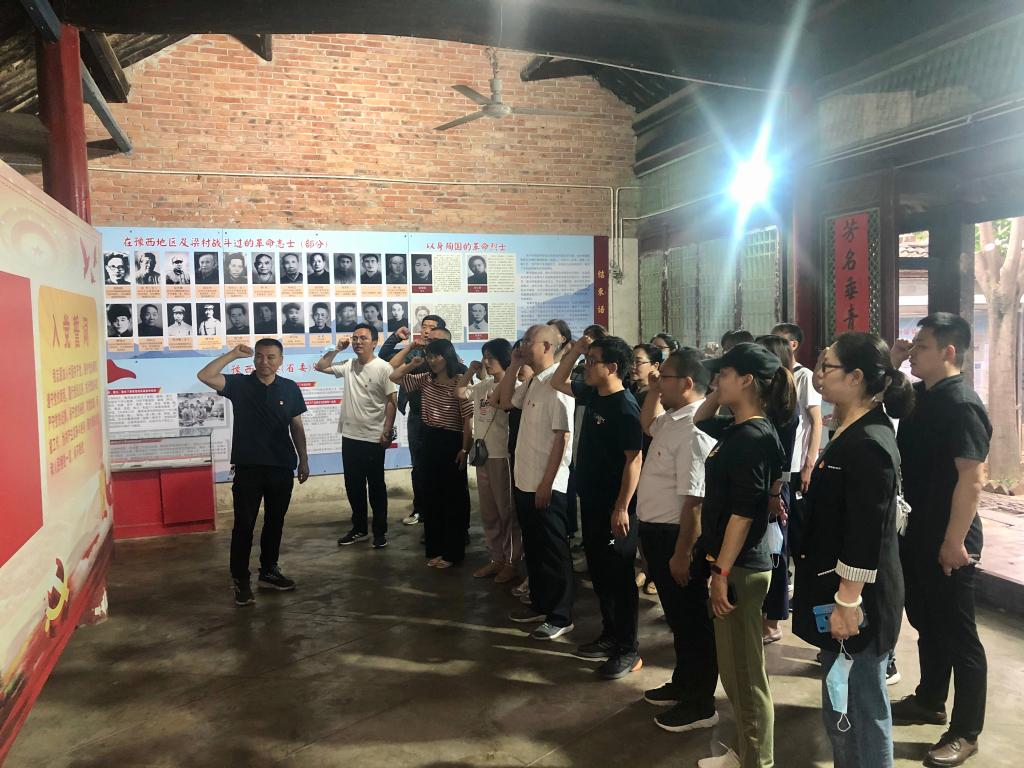 跟随着讲解员的讲解,大家了解了豫西特委的诞生、历史沿革、统战工作、《前锋报》刊印、文艺抗战、牺牲烈士等可歌可泣的斗争事迹。一组组展板、一幅幅照片、一件件革命遗物,诉说着共产党人矢志革命、不畏牺牲、敢于斗争、乐于奉献的精神和品格。在听到梁济生等烈士的光辉事迹时,大家被革命前辈的精神深深打动,不禁热泪盈眶。最后,大家庄严举起右手,重温入党誓词。