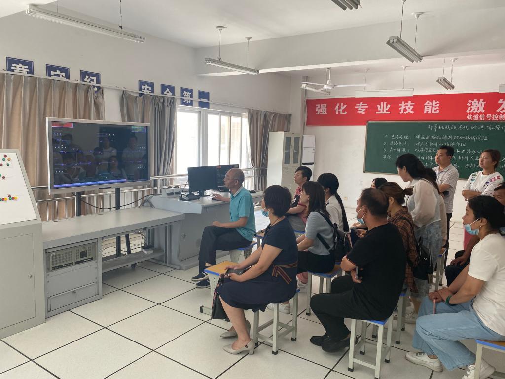 5月27日上午,轨道信号工程系组织30名学生家长代表到校参观交流。系主任王民哲向各位家长介绍了系里整体情况、学生就业、师资队伍、实训室(实训场地)、师生活动开展、成果荣誉等,副主任马瑞就如何做好学生管理、家校共育与家长们作了交流。随后,王民哲、马瑞带领家长们一起参观了系计算机联锁实训室、高铁综合维护实训室和室外综合演练场。家长们对学校给予了高度认可,也对推动系里更好的发展提出了意见建议,最后大家合影留念。