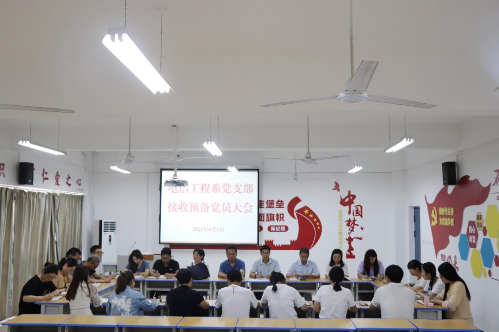 6月1日下午,电信工程系党支部召开全体党员大会,讨论接收李军华、李琼两位同志为预备党员。会议由党支部书记张波主持。