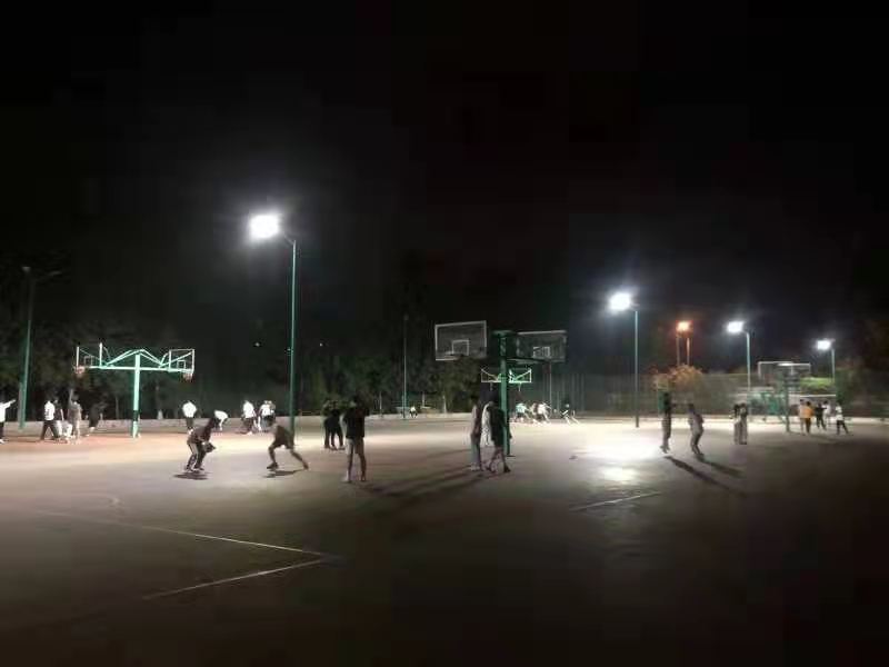 通过十天的紧张施工,学校篮球场晚间变明亮了,为全校师生的晚间活动提供了保证。