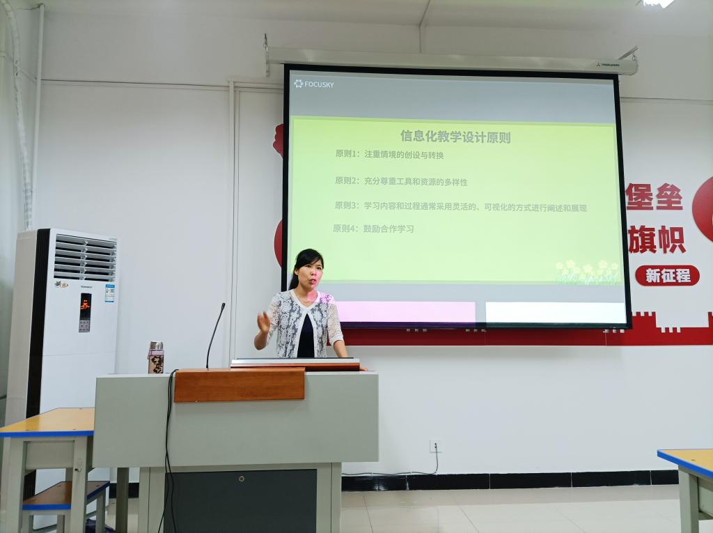 罗晓丽老师以《教学课堂与信息化的深度融合》为题,从信息化教学特点、教学如何融入信息化、信息化教学设计原则、信息化教学设计技巧、信息化教学工具、信息化教学案例等六个方面系统的向大家介绍了信息化教学的理论与实际应用,回答了关于信息化教学究竟是什么、为了谁、怎么做、怎么好等大家关心和疑惑的问题。