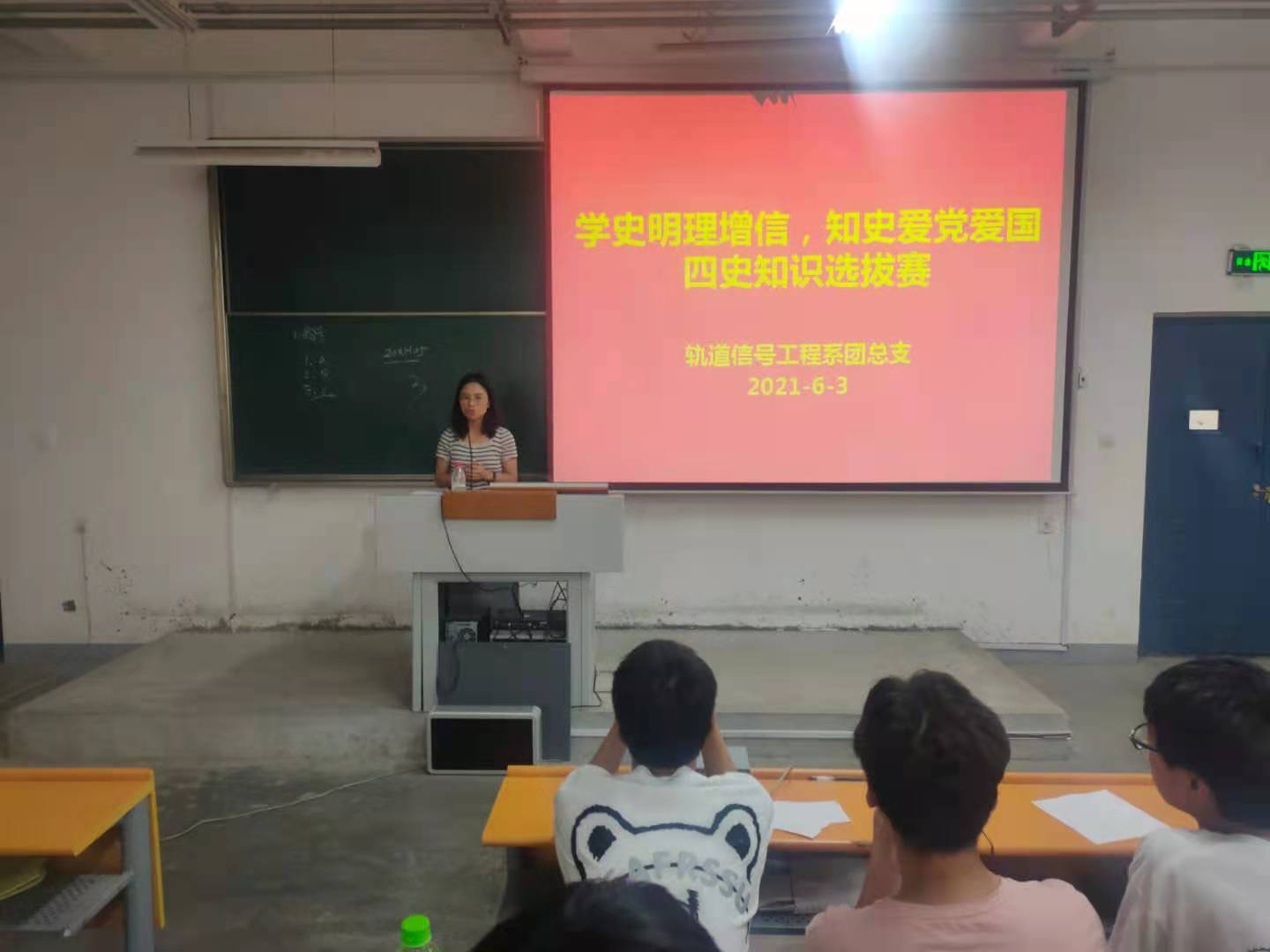 为了更好地在广大青年学生中掀起“学四史”热潮,落实校团委对“四史”学习工作的统一部署,6月3日下午,轨道信号工程系在1号教学楼阶梯教室举行了“学史明理增信,知史爱党爱国”四史知识竞赛。系学管主任马瑞和系办公室全体老师参加此次比赛。