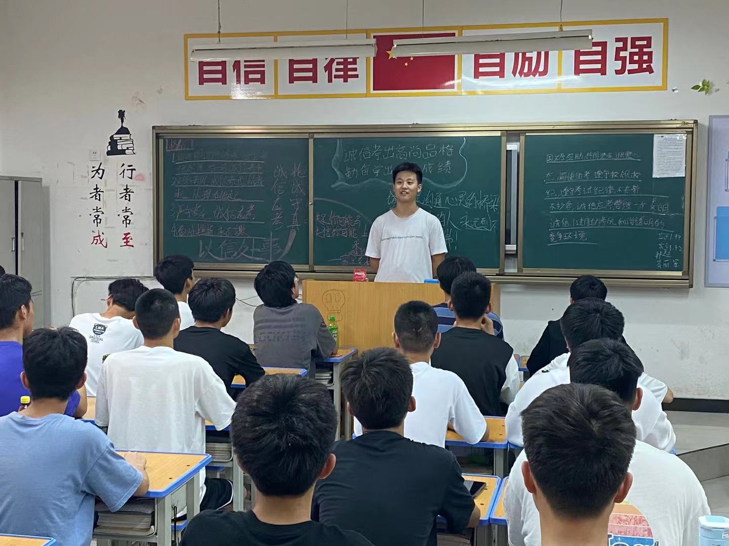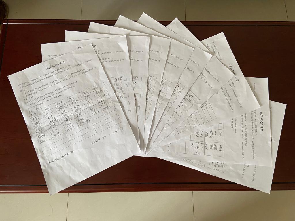 6月7日晚,全系所有班级召开了以“诚信考出高尚品格,勤奋学出优异成绩”为主要内容的学风教育和考前动员主题班会,班主任老师们强调了期末考试的重要性及诚信备考的必要性,倡议大家在考试前的时间里努力攻克学习中遇到的难题,加强与老师和同学之间的沟通,合理安排作息时间,树立起自主学习的意识。随后,各班组织学生纷纷签署了《诚信考试承诺书》。
