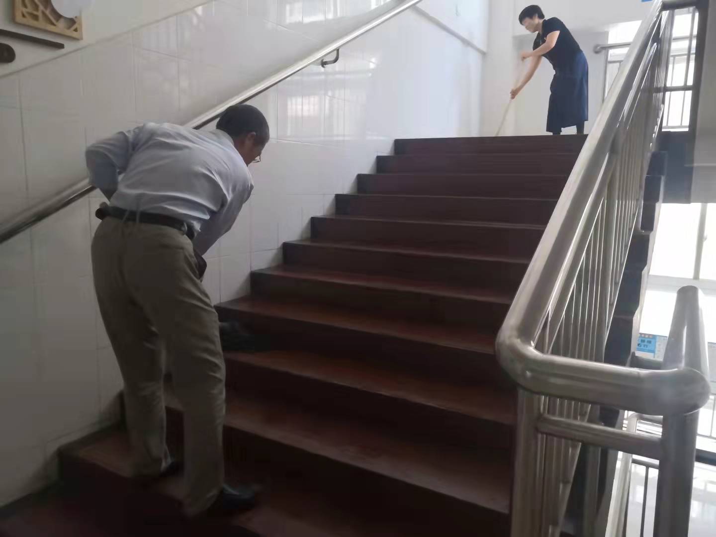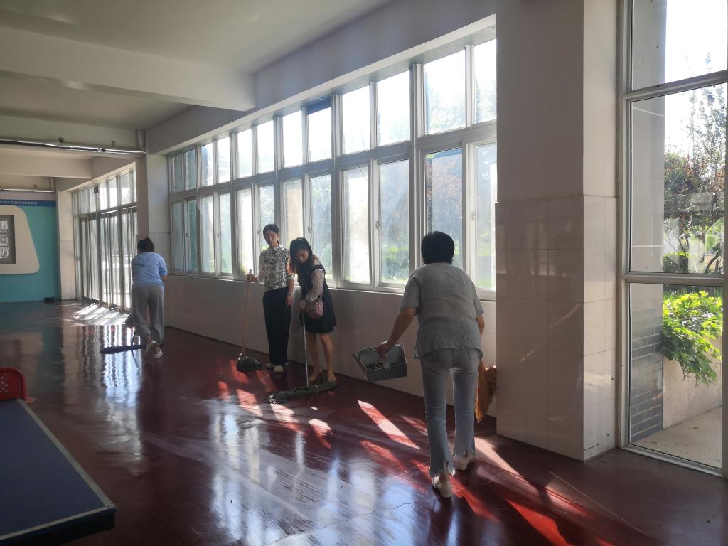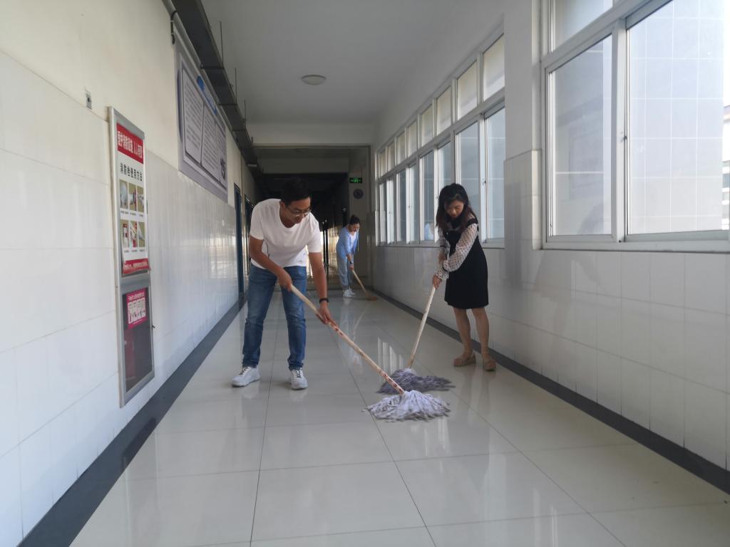 活动中,全体党员不惧辛苦,全力投入劳动中,将二号教学楼大厅、楼道、楼梯和扶手进行了彻底清洁,并对重点防控区域进行了消杀,为迎接开学做好了准备。