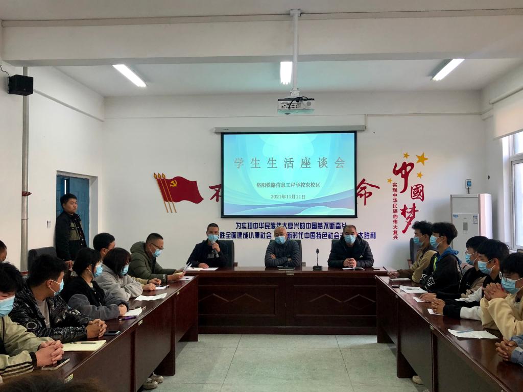 11月11日下午,东校区后勤管理部组织召开学生生活座谈会。校领导杨建光、李文光,后勤管理部、学生管理部、学校餐厅等部门负责同志、班主任代表及30余名学生代表参加座谈会。