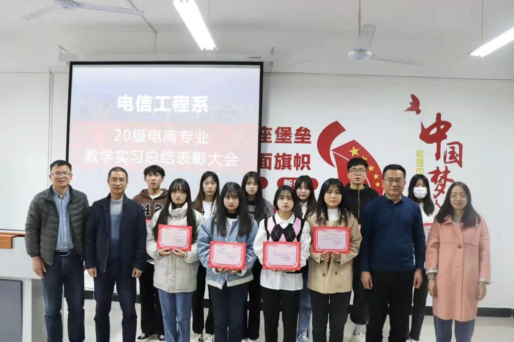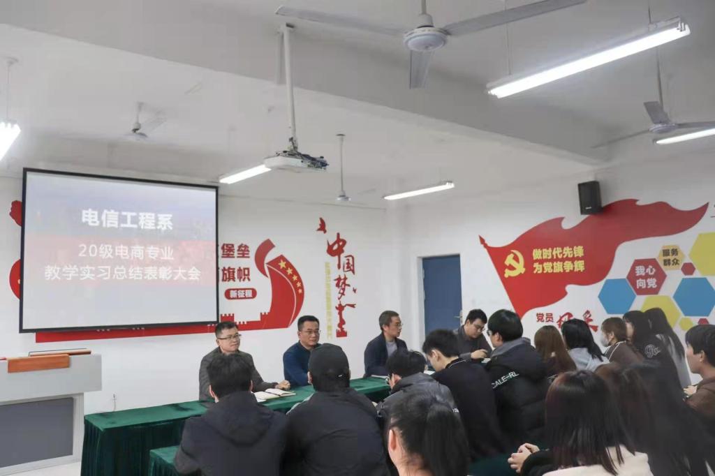 11月24日下午,电信工程系在2号教学楼会议室举行“2020级电商专业教学实习总结与表彰大会”。副校长于庆斌、电商教研室负责同志、教师代表及学生代表参加,会议由电信工程系副主任李军华主持。