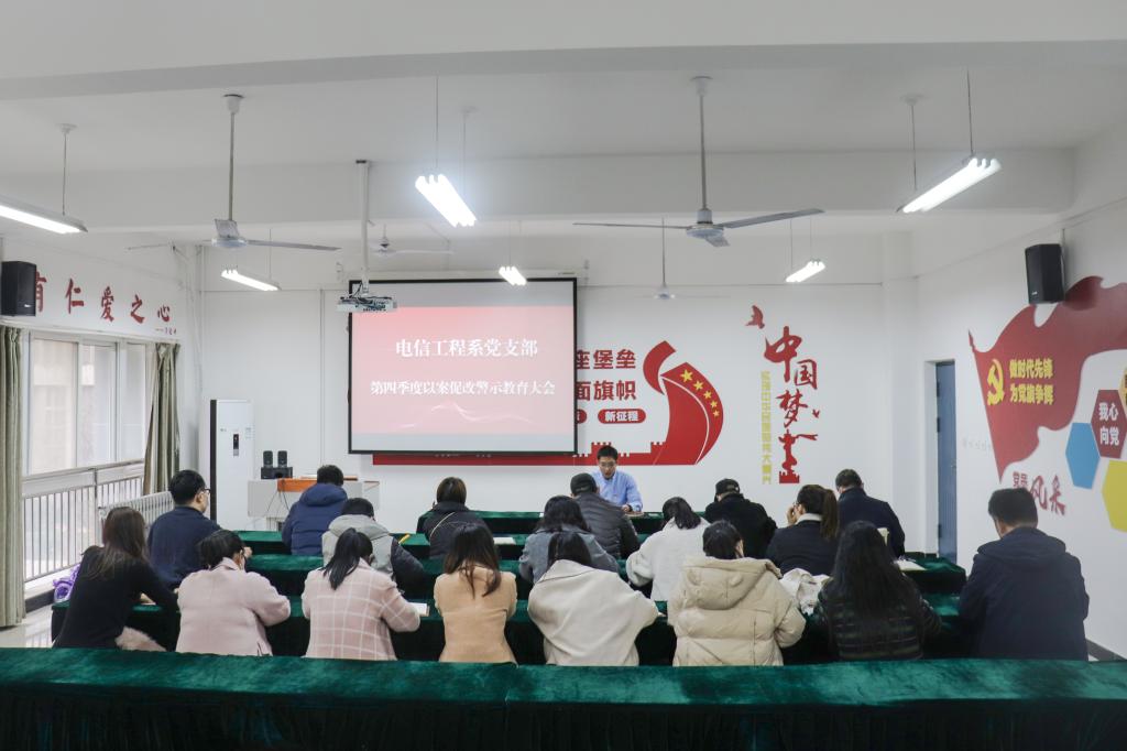 11月29日下午,电信工程系党支部在2号教学楼党员活动室召开政治理论学习暨以案促改专题会议。电信工程系全体党员参加会议,会议由张波主持。