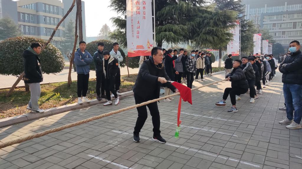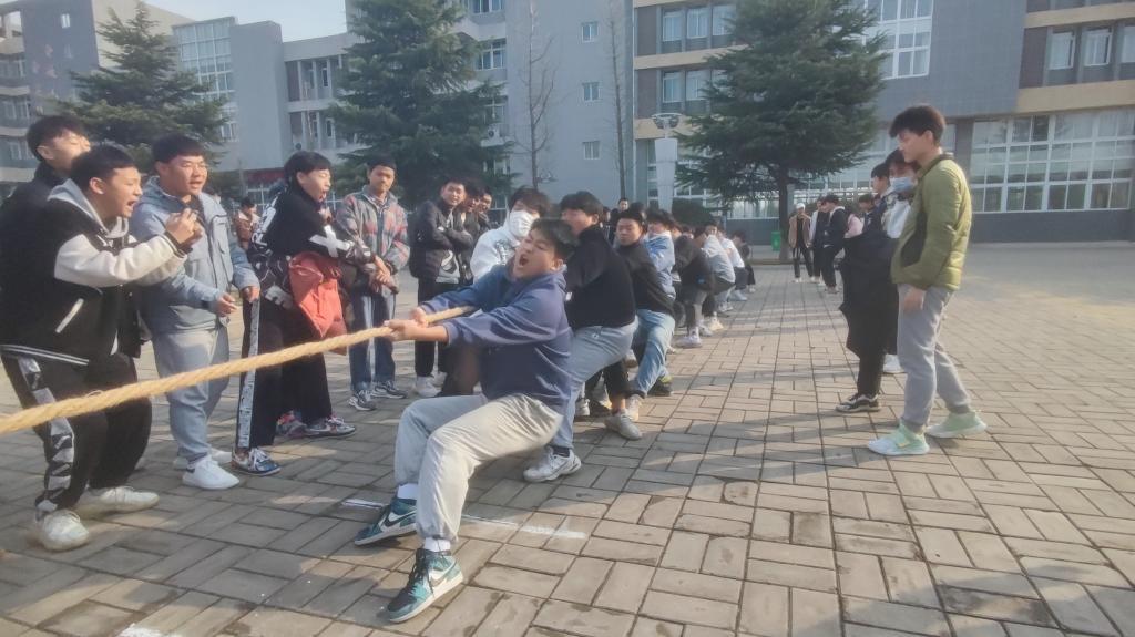 在冬日的暖阳下,拔河的同学使出浑身解数,场下助威的同学们也看得热血沸腾,情绪高涨,呐喊声、加油声此起彼伏,给比赛增添了一抹亮色。无论是场上场下,每一声呐喊都带来一股青春力量!