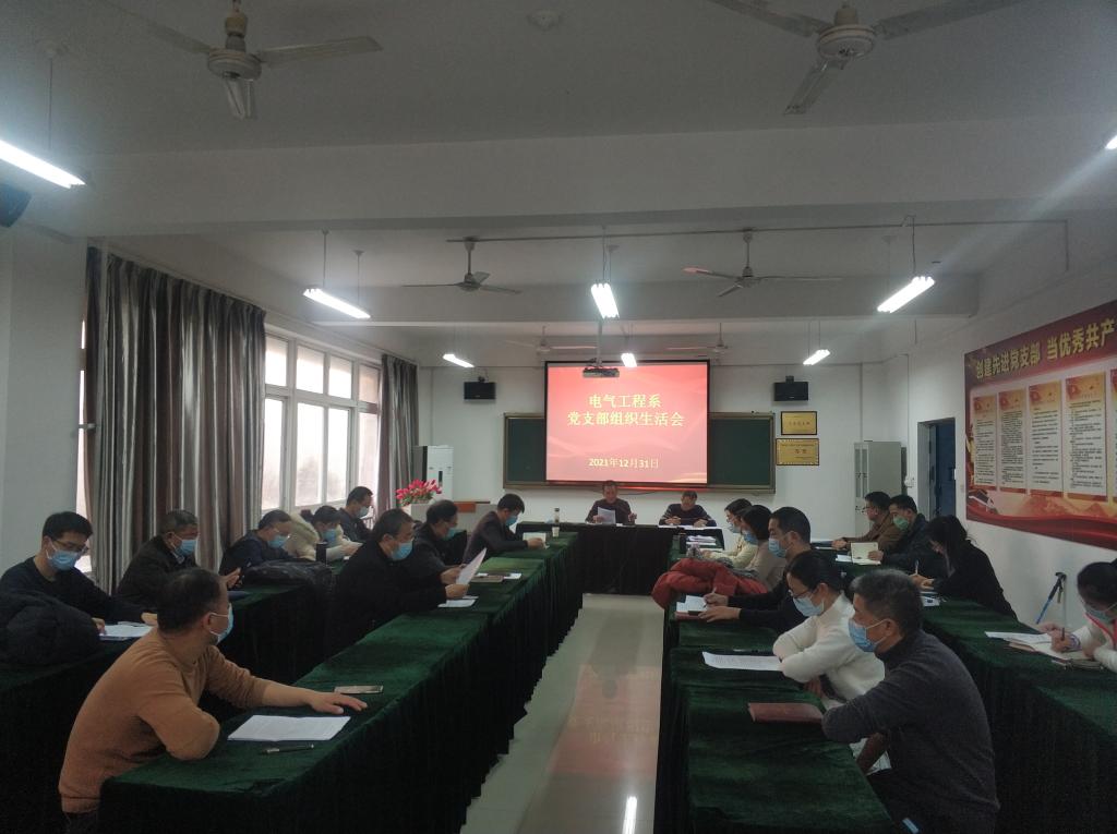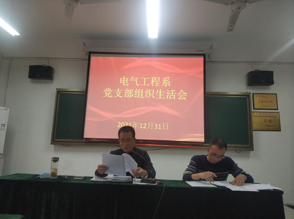 12月31日,电气工程系党支部在338党员活动室召开了2021年度组织生活会,并开展民主评议党员、民主评议党支部工作,会议由系党支部副书记杜盟盟主持,全体党员参加会议。
