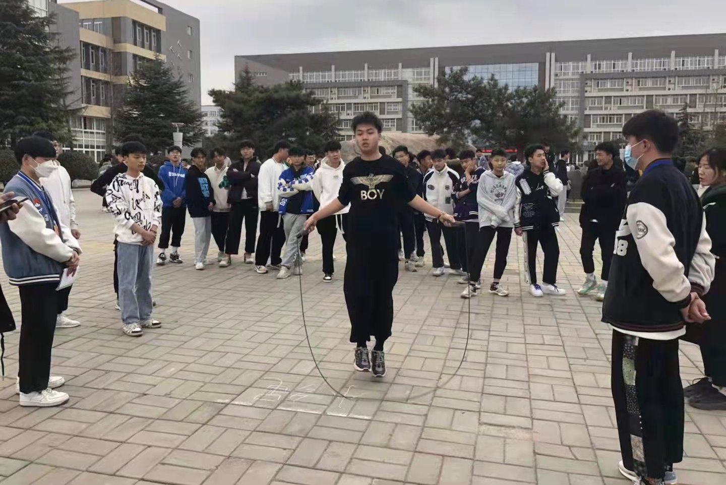 赛场外,参赛的同学们利用自习课和业余时间日练夜练,精益求精,收获了健康快乐。赛场上,8分钟的时间内,小绳大绳相结合,选手们动作娴熟,手上的彩绳快如闪电。无论是在比赛中还是在练习时,同学们热情飞扬、斗志昂扬,满满的是青春自信!