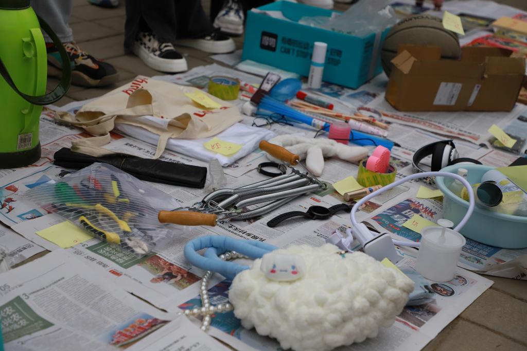 现场热闹非凡,叫卖声不绝于耳,同学们将自己的闲置物品拿出来交换,实训工具、运动器材、书本等生活学习用品引来同学们驻足购买。