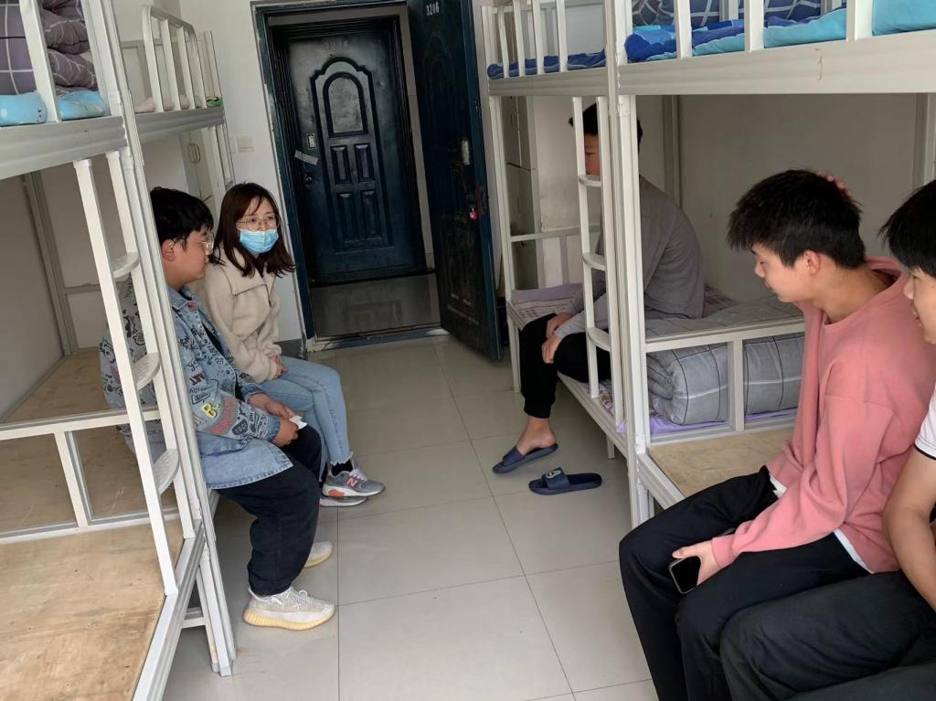 我校学工部部长张端立参与此次活动并和班主任老师、学生干部们一起深入学生宿舍公寓楼,指导帮助同学们整理宿舍内务,与宿管教官交流研判分析下一步宿舍管理服务工作。系办老师组织部分学生进行宿舍内务观摩学习,班主任老师与同学们一起参与宿舍娱乐活动,关心询问疫情当下同学们学习生活遇到的困难困惑给予解决并反馈处理,21信号2班刘宇龙开心的说到:“谢谢老师帮我们一起整理宿舍卫生,感觉好幸福啊!”