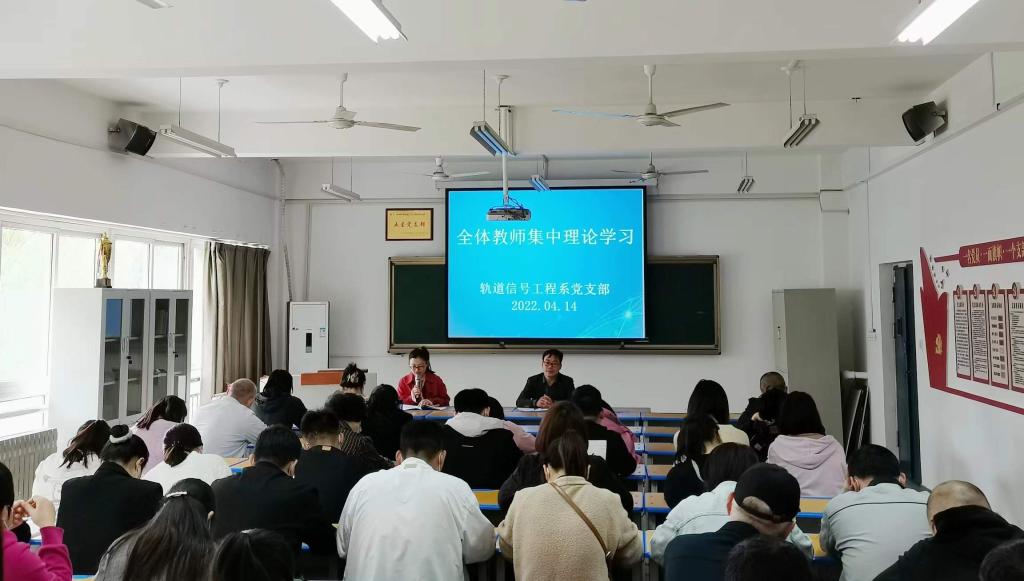 4月14日下午,根据校党委学习工作部署,轨道信号工程系在1号教学楼238教室召开政治理论学习大会,系全体教职工参加,系党支部书记、主任张建平主持。