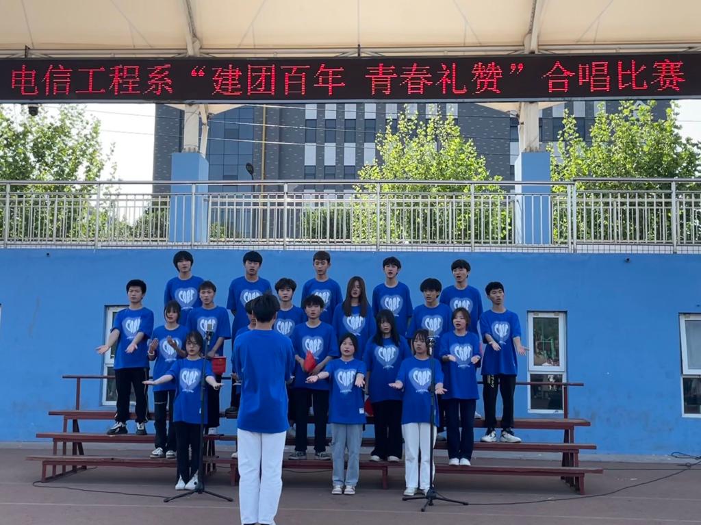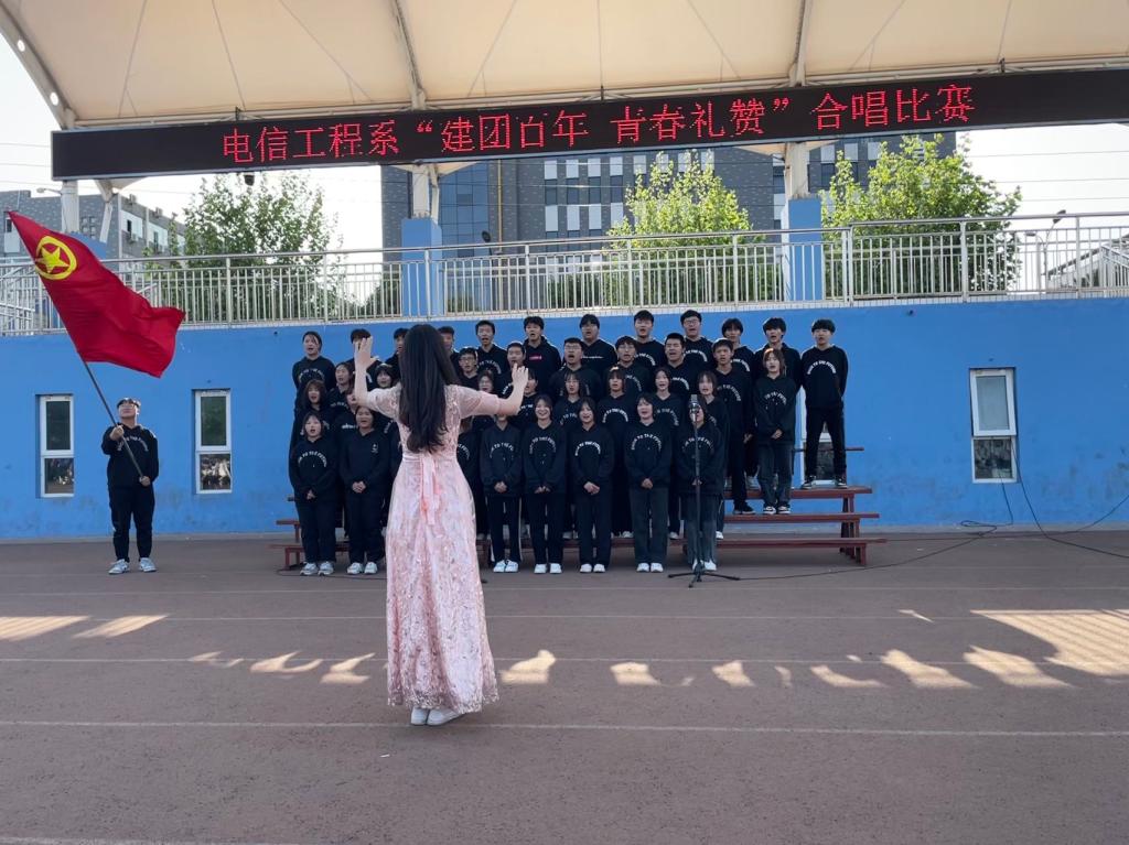 为庆祝中国共产主义青年团建团100周年,团结引领我校广大团员青年坚定跟党走、建功新时代。4月19日、20日下午,电信工程系分两场在操场举行“建团百年 青春礼赞”合唱比赛预赛。