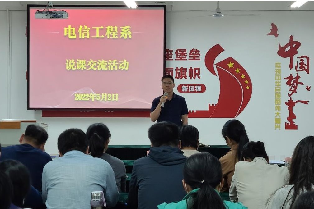 为了不断深化课堂教学改革,加强教师同行之间的交流沟通,激发广大教师在课程教学改革中的主动性和创造性,鼓励专任教师在教学中大胆探索、勇于创新,提升课堂教学质量和水平,5月2日下午,电信工程系开展了说课交流活动。