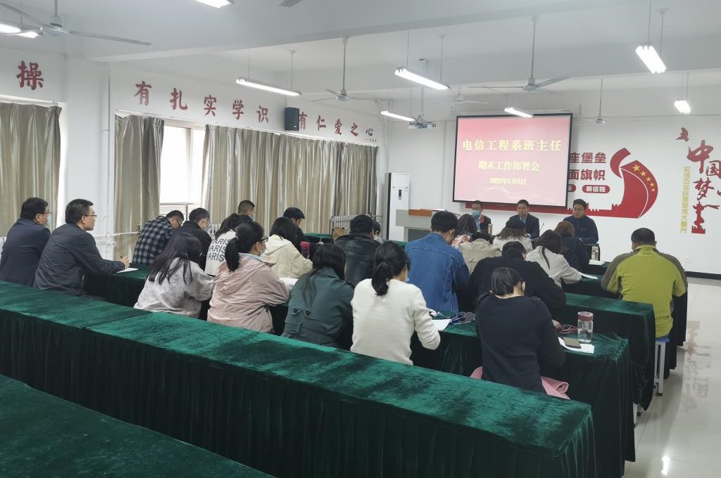 5月9日下午,电信工程系召开班主任期末工作部署会,电信工程系党支部书记、系主任张波,教学副主任李军华、学管副主任陈志坚及全体班主任参加会议。