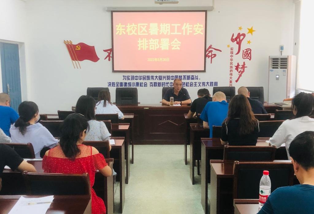 5月30日上午,东校区召开期末总结暨假期工作安排部署会议,副校长杨建光、李文光,东校区全体教职工参加。