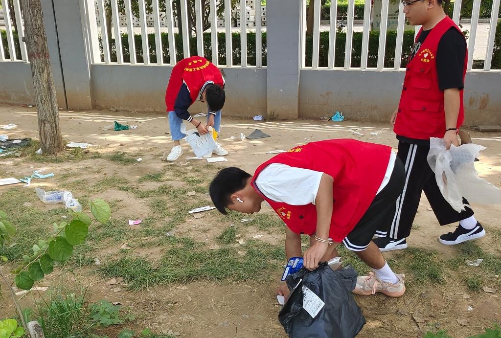 此次活动在学校南门口进行,大家重点打扫校园卫生死角,学生们精神昂扬,干劲十足,圆满完成了此次志愿服务活动。