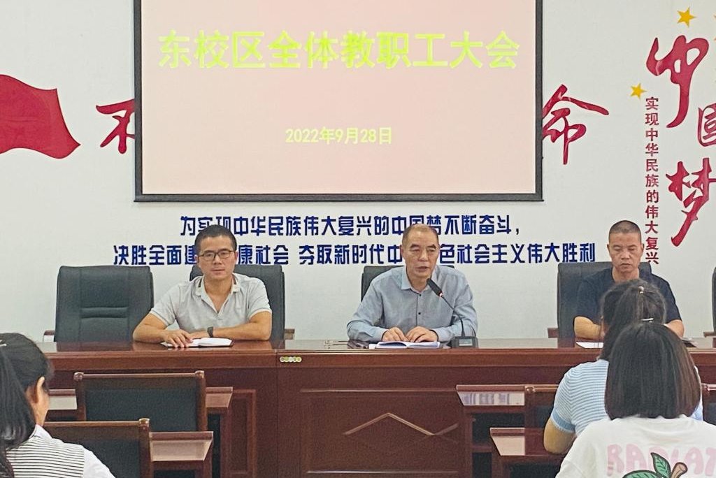 9月28日下午,东校区在4号办公楼二楼会议室召开全体教职工大会。副校长李文光出席,东校区各部门负责同志及全体教职工参加,会议由东校区副主任肖敏主持。