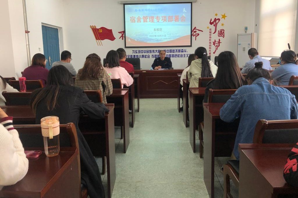10月21日中午,东校区在会议室召开了宿舍管理专项工作部署会,全体教师参加,校党委委员、副校长李文光主持并作了专项部署。