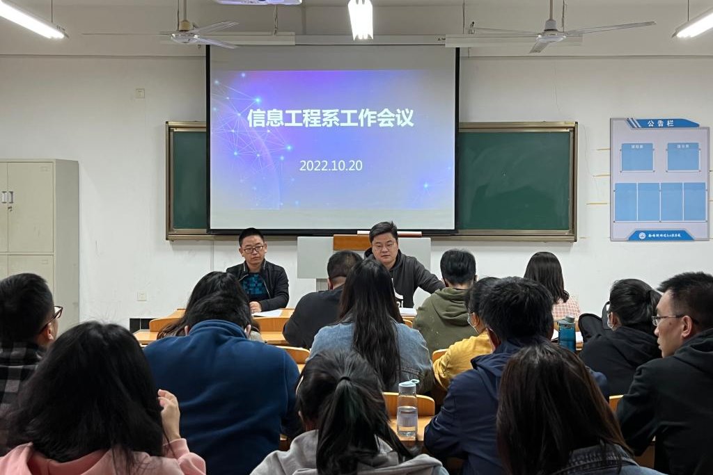 10月20日下午,信息工程系召开全系教师工作会议。信息工程系主任邱智铖,副主任臧嘉琦、郑波涛及全体教师参加了会议。会议由邱智铖主持。