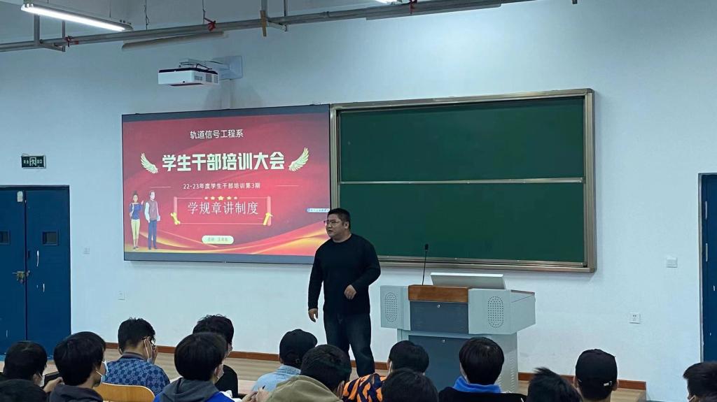 为确保疫情防控当下学生工作安全稳定开展,10月12日至21日,轨道信号工程系连续开展三期学生干部培训大会,加强对学生会干部的教育、培养和管理,系全体学生干部参加培训。