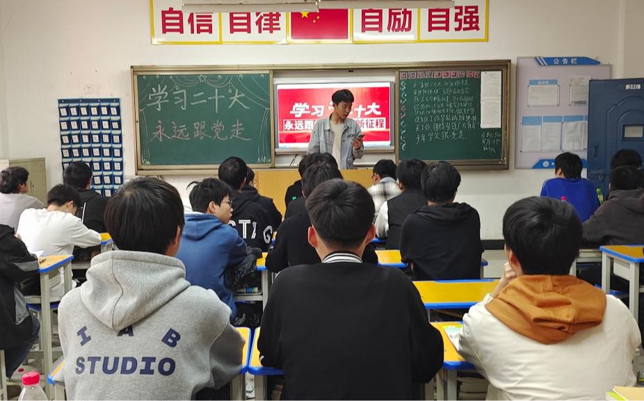 一是加强舆论宣传引导,营造政治学习氛围。团学干部带领学生在1号教学楼教室门口和6号公寓楼寝室门口布置了党旗和国旗、并绘制主题板报,建立了浓厚的校园政治文化氛围,使同学们时刻都能感受到党和国家对青少年的关爱,增强学生爱党爱国的理想信念;二是提高思想认识站位,全面落实教育主责。团总支号召各团支部在课前十分钟唱响红歌,让嘹亮的红歌成为课程的前奏曲;三是总结前期活动经验,形成持续学习机制,制定符合学生学情的专题,利用第二课堂开展学习,将学习成果转化为学习动力。