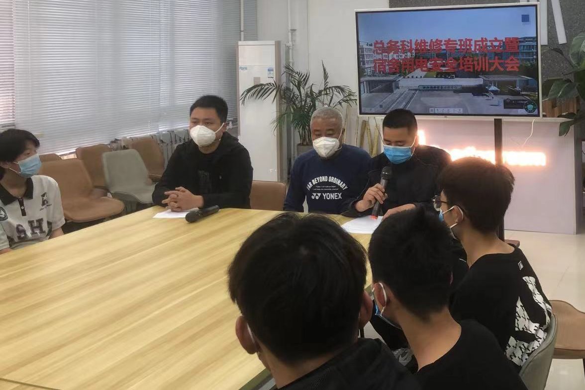 任中原带领学员徒弟们共同学习了宿舍安全用电第一课。会后学员们纷纷表示,要认真学习水电维修知识,为服务好同学们和学校发展贡献自己的一份力量。