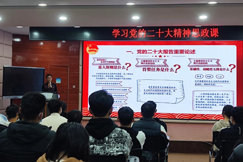 11月16日下午,电信工程系党支部书记、主任张波在智慧大讲堂为大专生讲授党的二十大精神专题思政课。