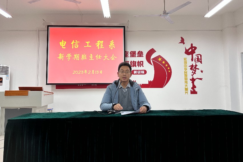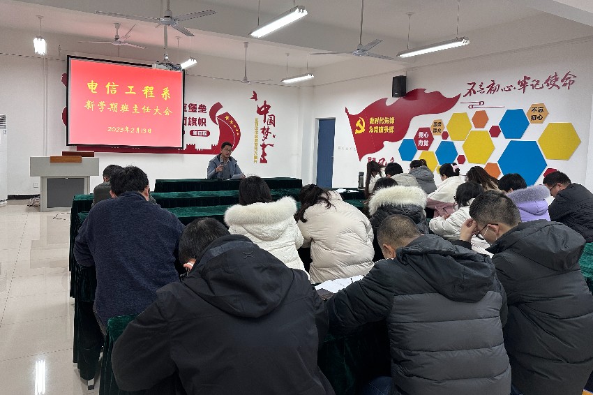 2月13日下午,电信工程系在二号教学楼230会议室召开新学期班主任会,系党支部书记、主任张波,学管主任陈志坚及全体班主任参加会议。