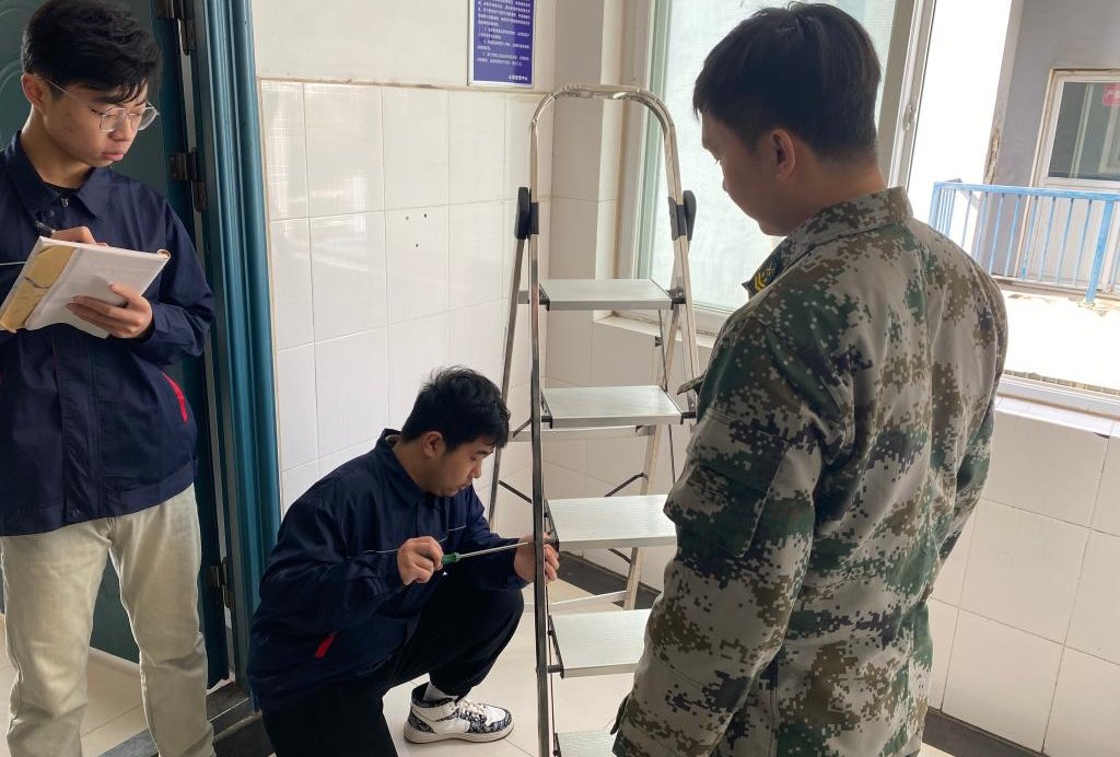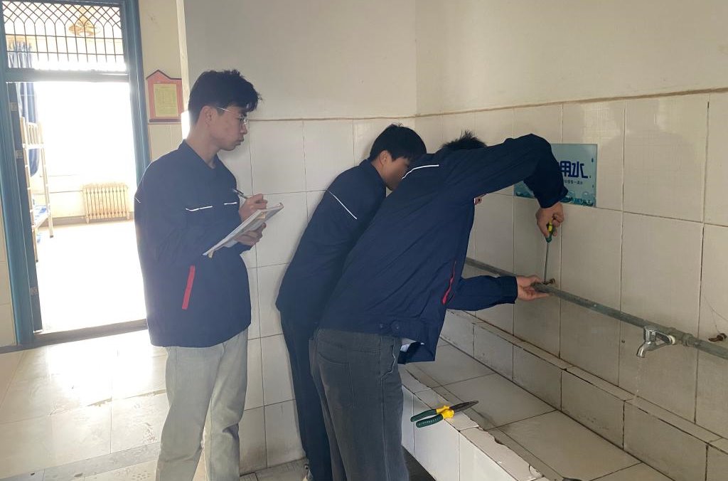 维修小队自2月11日至19日,利用课余时间充分发挥电气类专业素养,抓住学校供暖前期检修机会,对公寓楼内对暖气、床、门窗等进行排查检修,供暖和供水管网进行摸底检查。