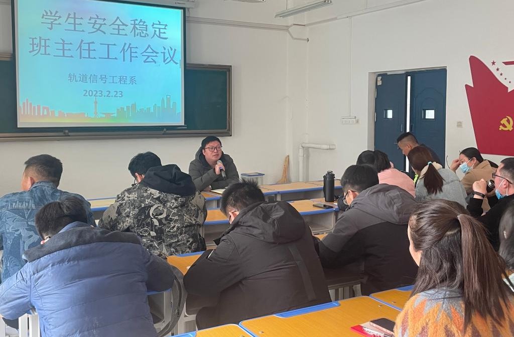 2月23日下午,轨道信号工程系于一号教学楼238召开学生安全稳定班主任工作会议,轨道信号工程系副主任李福建及全体班主任、值班老师参加会议。