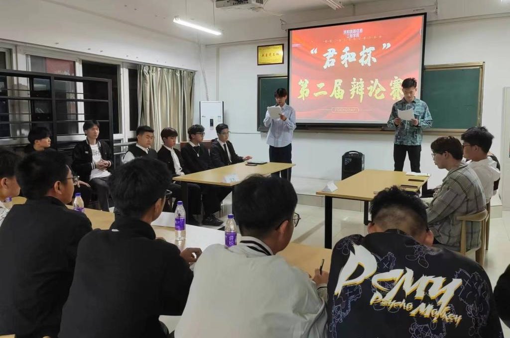 3月8日晚,轨道信号工程系举办洛阳铁路信息工程学校第二届大学生辩论赛,本次辩论赛共6支参赛队伍分三轮进行对决。为保证比赛公平公正,现场裁判由轨道信号工程系和电信工程系共30名学生代表组成。本场辩题:大学生谈恋爱的利弊,比赛由21DX03班代表队对阵22DX01班代表队。
