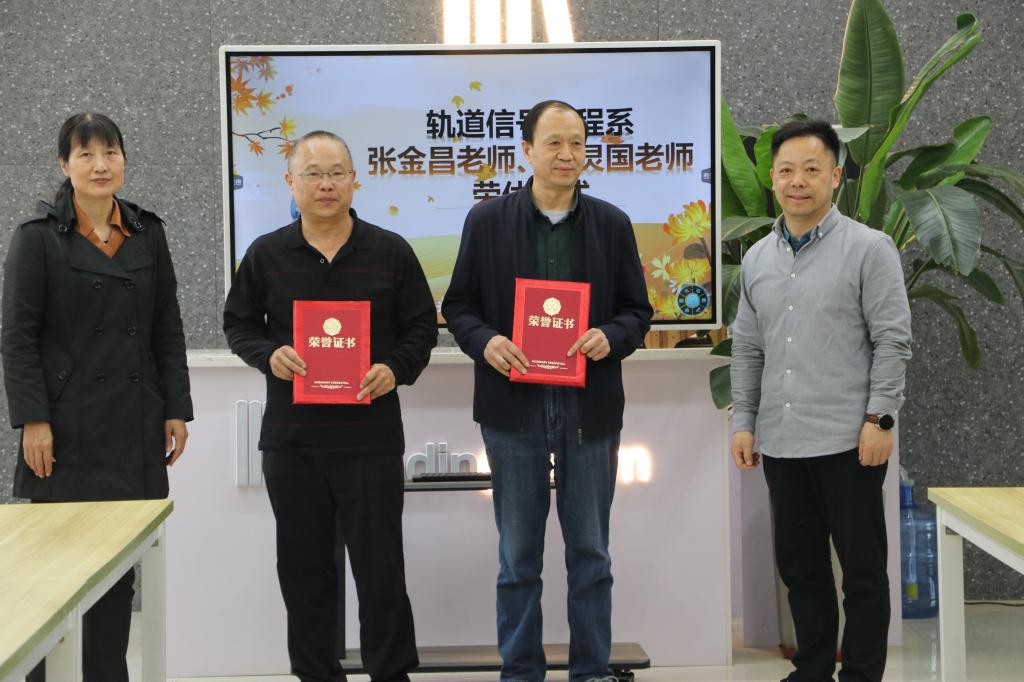 为进一步增强退休职工的职业荣誉感,激励青年教师传承优良作风。 3月14日,轨道信号工程系在图书信息楼一楼“诗与远方阅览室”,举行柳灵国、张金昌老师荣休仪式。常务副校长王怀钦,纪委书记郭青,校工会主席、副校长史亚非,及轨道信号工程系全体教师参加了本次仪式,仪式由轨道信号工程系分工会主席李福建主持。
