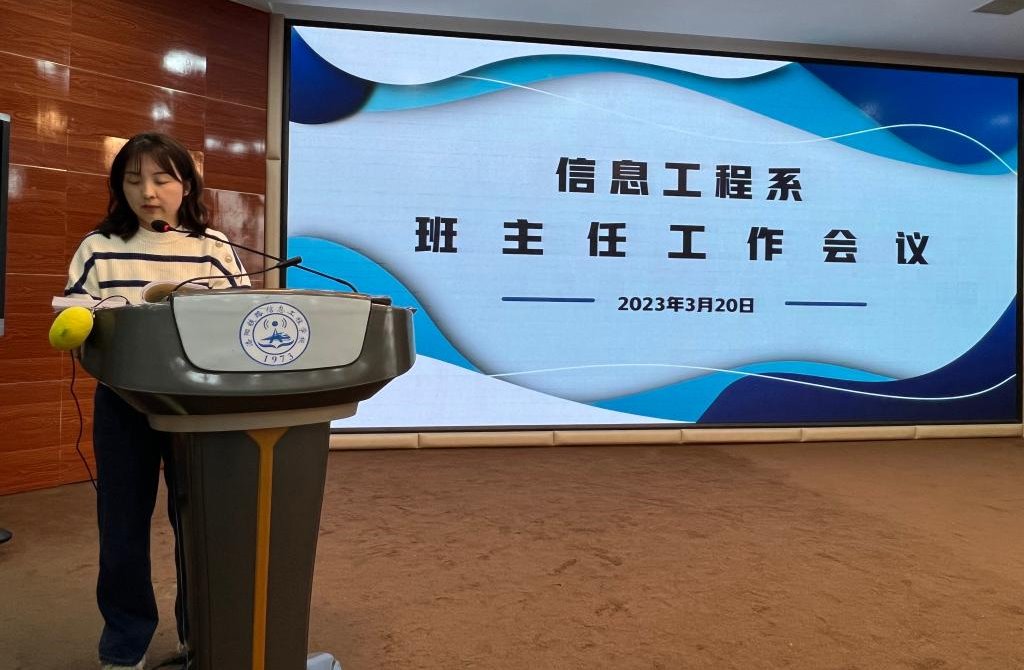 为加强班主任工作规范化、制度化管理,信息工程系于3月20日下午在智慧大讲堂召开班主任工作会议。信息工程系主任邱智铖,副主任臧嘉琦,系办干事及2021级、2022级全体班主任参加了会议。会议由臧嘉琦主持。