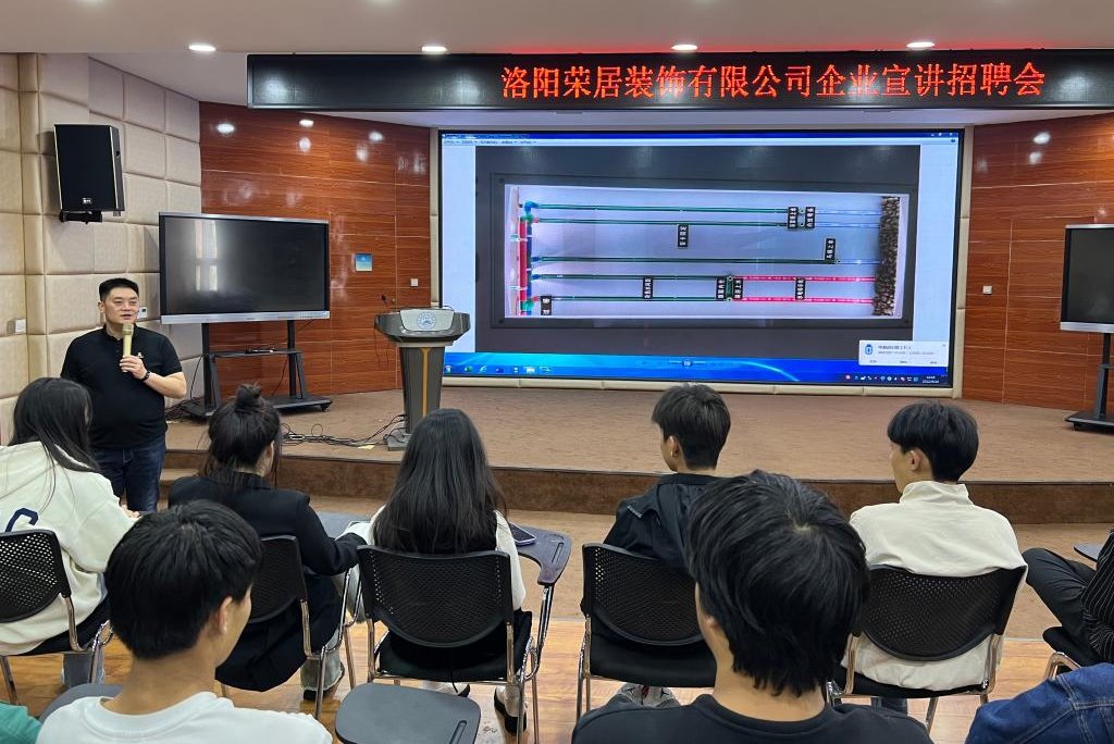 为全面深入推进校企战略合作,充分发挥学校与企业的双方优势,4月10日下午,洛阳荣居装饰工程有限公司招聘宣讲会在智慧大讲堂成功举行。本次宣讲会由荣居装饰工程有限公司人事部经理朱浩源主讲,信息工程系2021级建筑装饰专业学生参加。