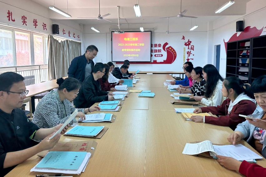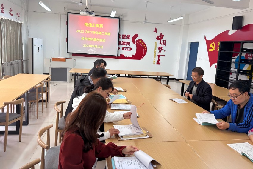为加强和改进教学工作规范,落实课堂教学管理,近期,电信工程系在系会议室,组织开展了学期教学资料检查、展示活动,全体教师参加活动并互相进行观摩学习。
