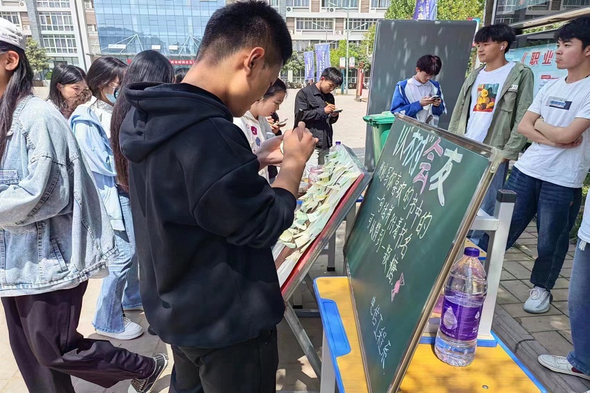 4月17日中午,高职学生会在学校南广场组织了“以树会友”书籍分享活动,邀请广大同学写下自己读过的好书,用一片片书籍的树叶丰满了知识的树干。全系同学利用课余时间阅读收集到的书目,纷纷写下自己读书的成果和心得体会,25日晚自习,同学们把认真完成的读后感张贴在教学楼内,供大家参观学习。