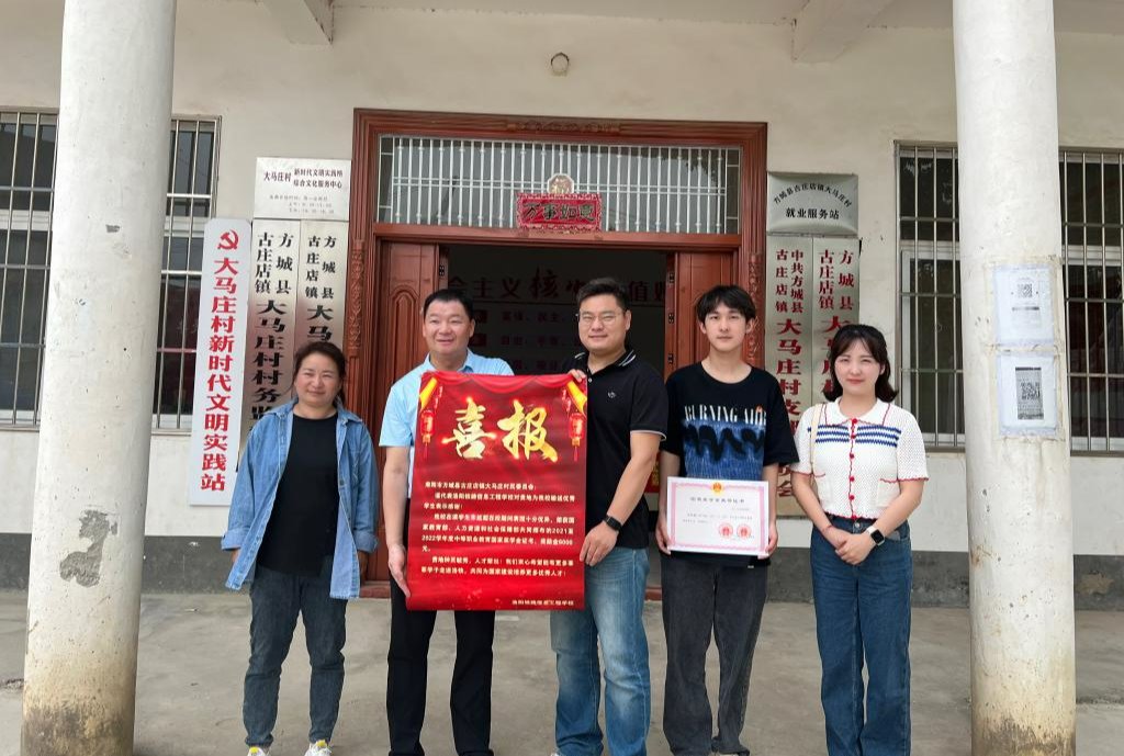 为营造“树榜样、学先进”的浓厚氛围,增强学生的个人荣誉感,坚定莘莘学子的理想信念,受学校领导委托,5月16日上午,信息工程系主任邱智铖、副主任臧嘉琦,系办干事陈英堃、康杰一行到2021级计算机应用3班朱延超同学家中送去荣获国家奖学金的喜报。