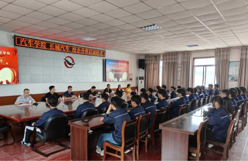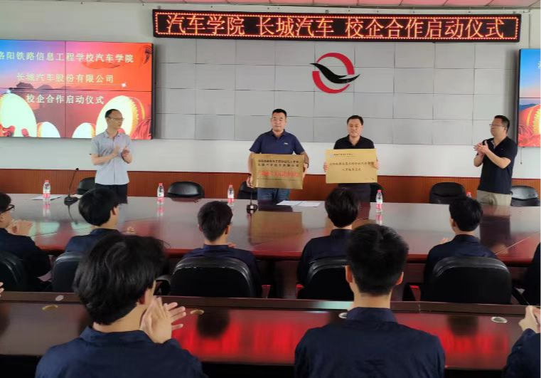 同学们认真观看了长城汽车企业宣传片,学习了解企业文化。双方负责人在人才培养模式、三教改革、学生技能考核等方面展开探索,签订协议并授牌“洛阳铁路信息工程学校汽车学院人才培养基地”。