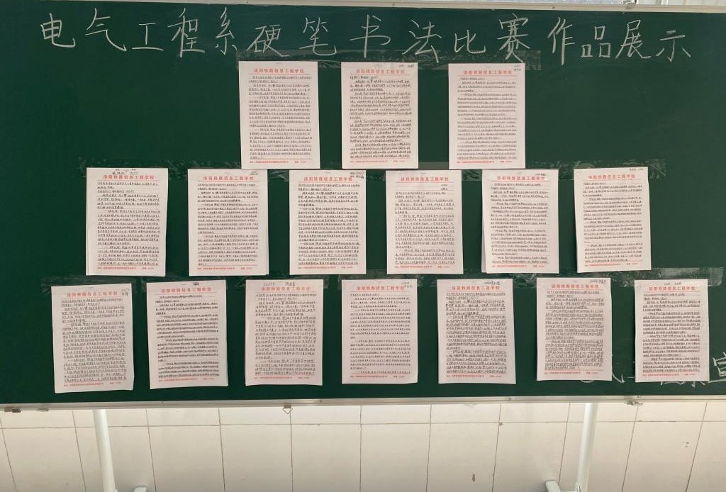 为贯彻学习习近平新时代中国特色社会主义思想主题教育,培养学生高尚情操,弘扬中华传统文化,5月24日-5月26日电气工程系利用自习课在全体班级中开展了硬笔书法比赛。